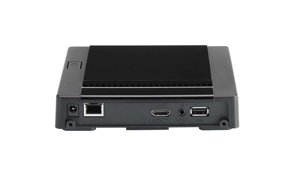 The MediaBox represents the player component of our infoscreen solution. The player connects via LAN or WLAN with our MediaChannel CMS and displays the configured playlists on a connected screen.