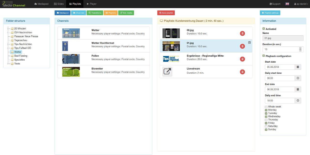 Then these content is directly integrated into the MediaChannel CMS and can be distributed to various screens as desired.